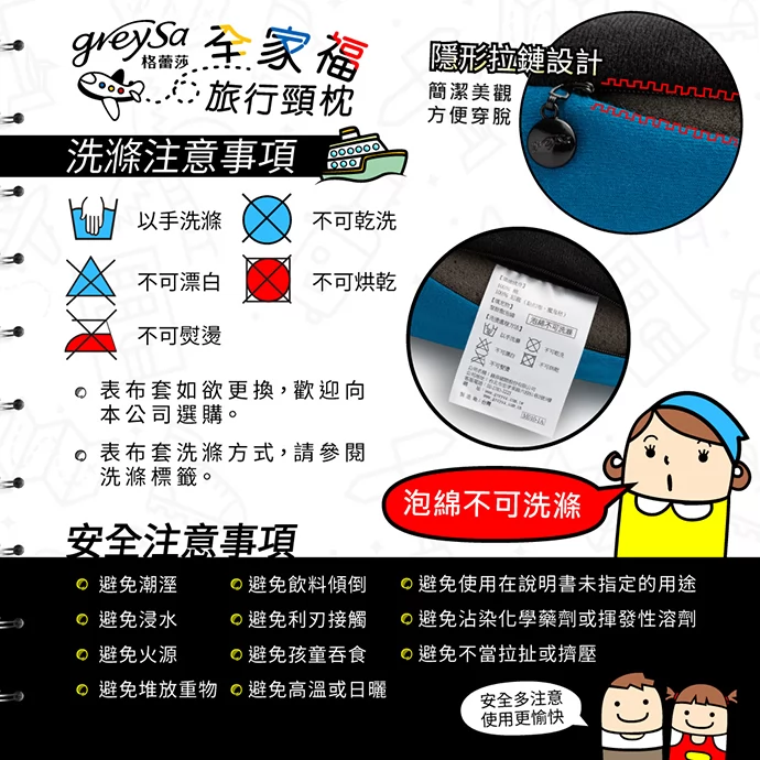 GreySa格蕾莎全家福旅行頸枕 保養注意事項: