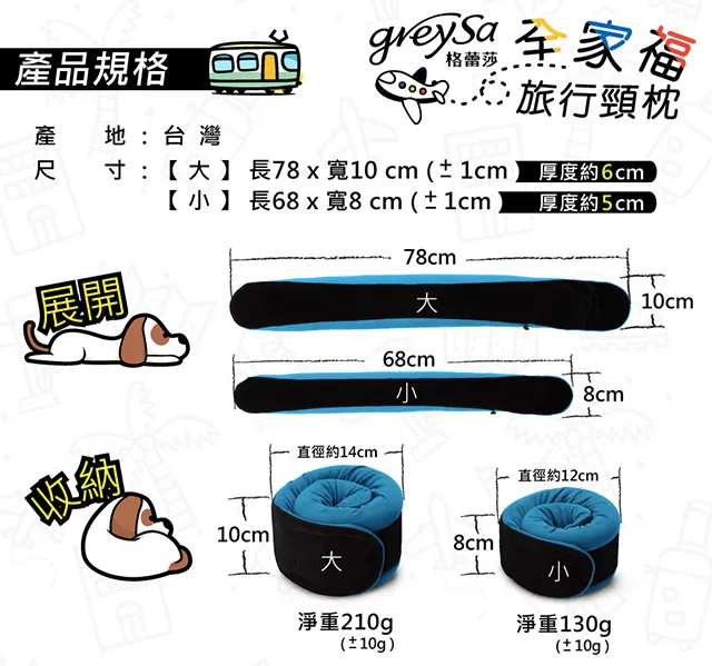GreySa格蕾莎全家福旅行頸枕 輕巧掌握 舒適旅行 輕鬆帶走