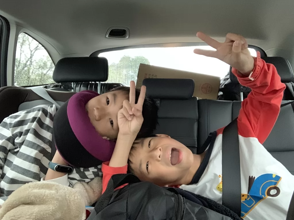 自從購入GreySa格蕾莎 全家福旅行頸枕後,在車上睡到東倒西歪的兩兄弟終於可以安穩地睡覺了