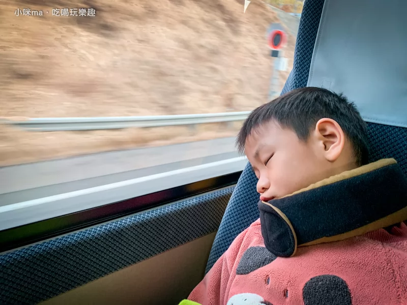 這趟旅程下來坐前面的孩子都睡得歪七扭八,小波跟米寶可睡得香甜了,完全沒撞到窗戶~哈哈哈