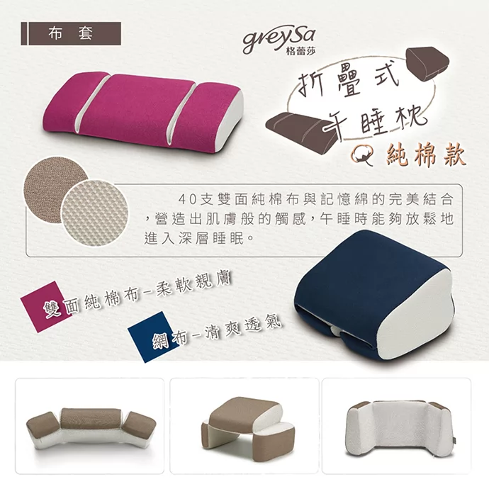 40支雙面純棉布與記憶綿的完美結合,營造出肌膚般的觸感,午睡時能夠放鬆地進入深層睡眠。