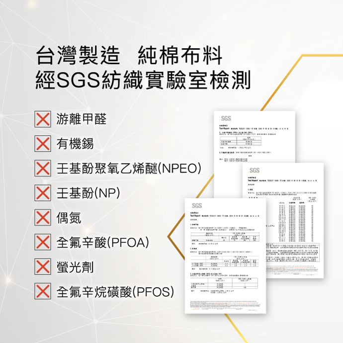 台灣製造 純棉布料 經SGS紡織實驗室檢測