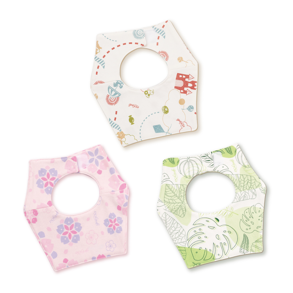 GreySa格蕾莎【小寶寶嬰兒口水巾三入組禮盒-童趣/櫻花/植物/棋盤】