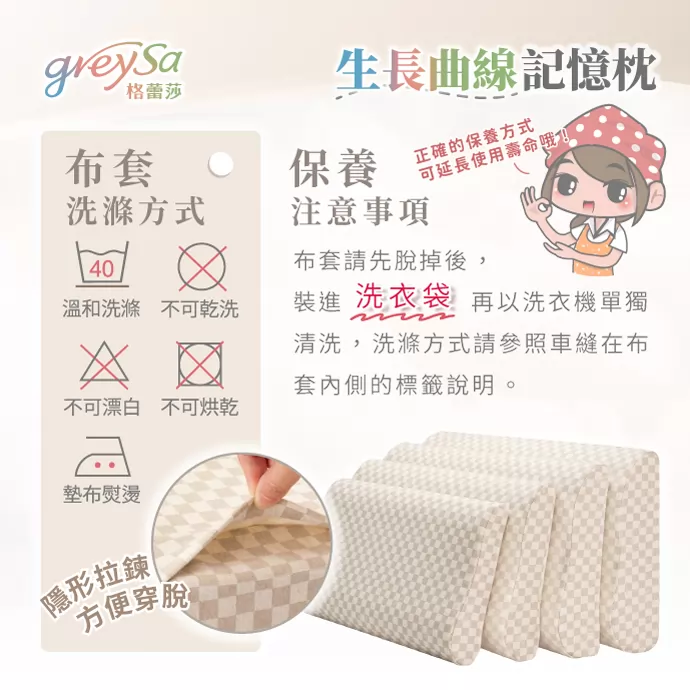 GreySa格蕾莎【幼兒生長曲線記憶枕XS-90備用枕頭套(不含枕芯)】
