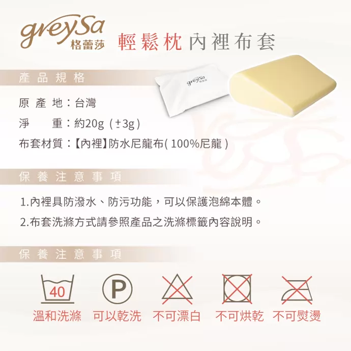 GreySa格蕾莎抬腿枕內裡布套產品規格: