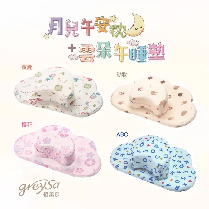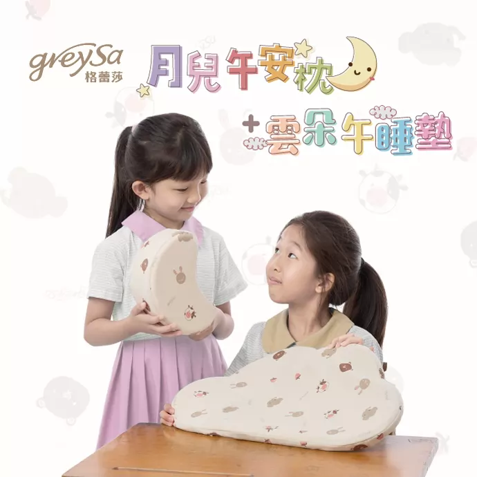 GreySa格蕾莎【月兒午安枕 + 雲朵午睡墊】組合(附贈收納袋)新生入學必備小學生午睡枕