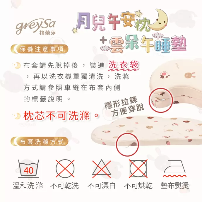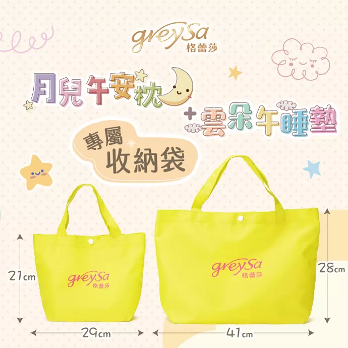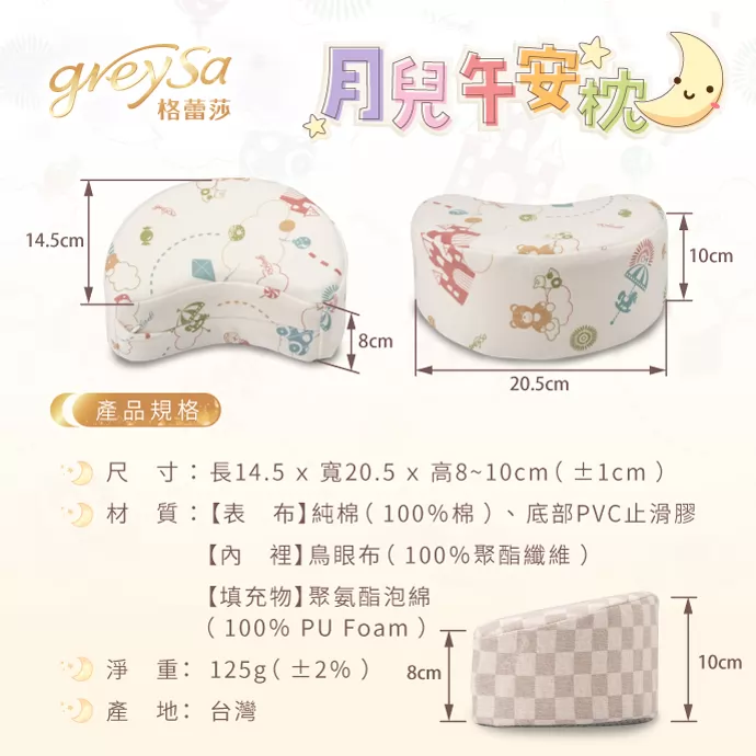 內容物:月兒枕x1、月兒枕收納袋x1、雲朵墊x1、雲朵墊收納袋x1