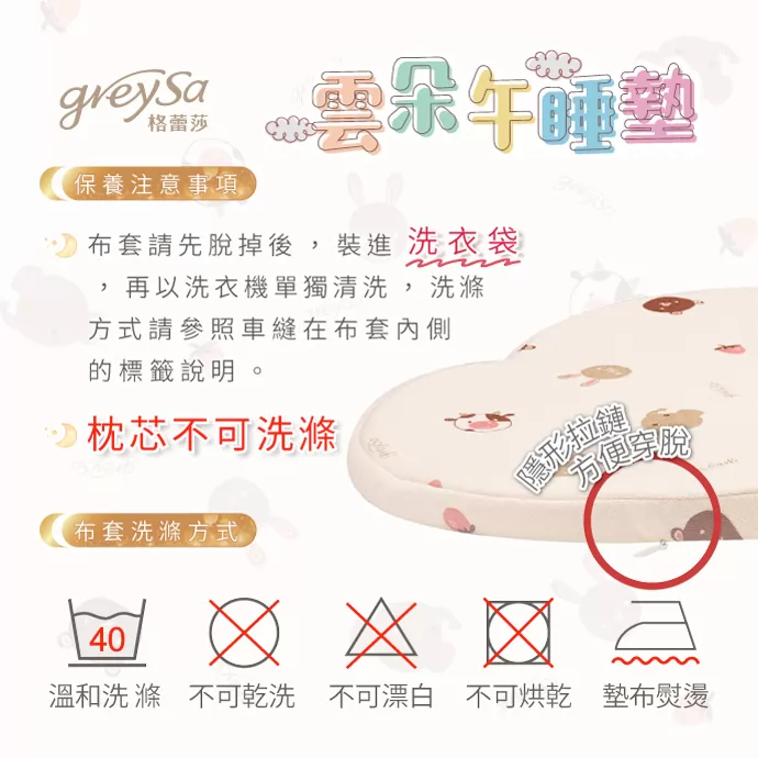 布套洗滌方式:溫和洗滌、不可乾洗、不可漂白、不可烘乾、墊布熨燙