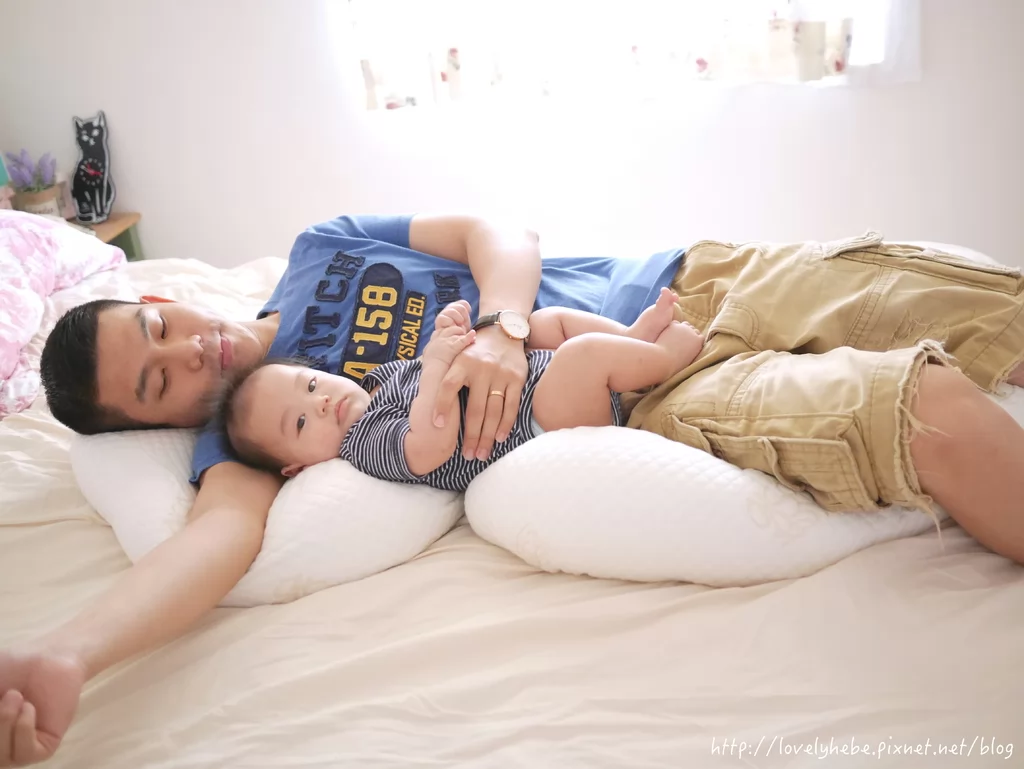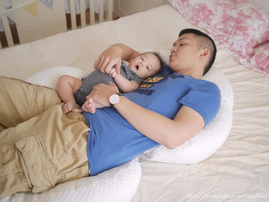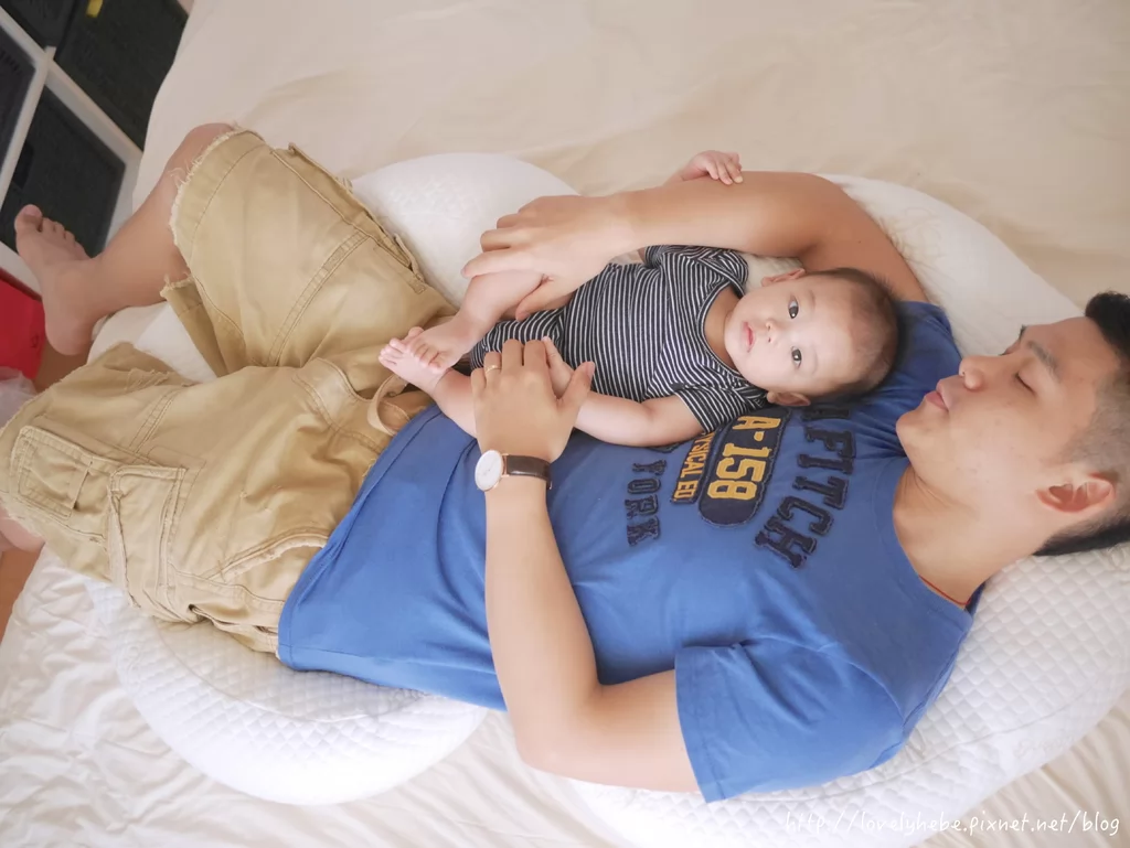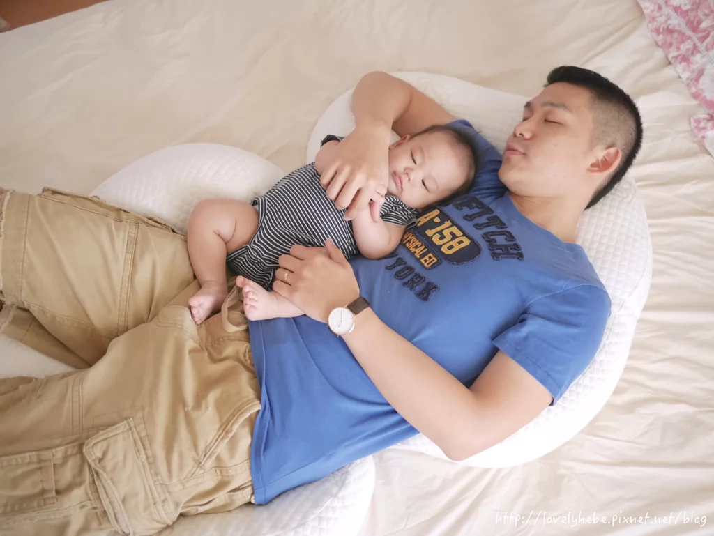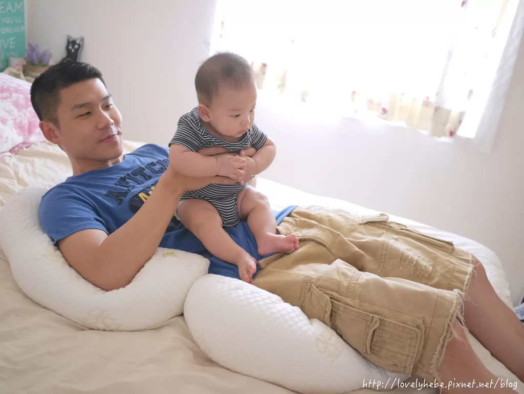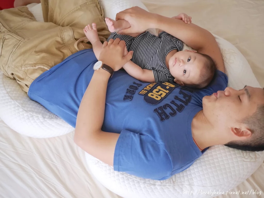 ((而且這哺乳枕真的不太會扁塌 你看老張這樣重 躺都ok