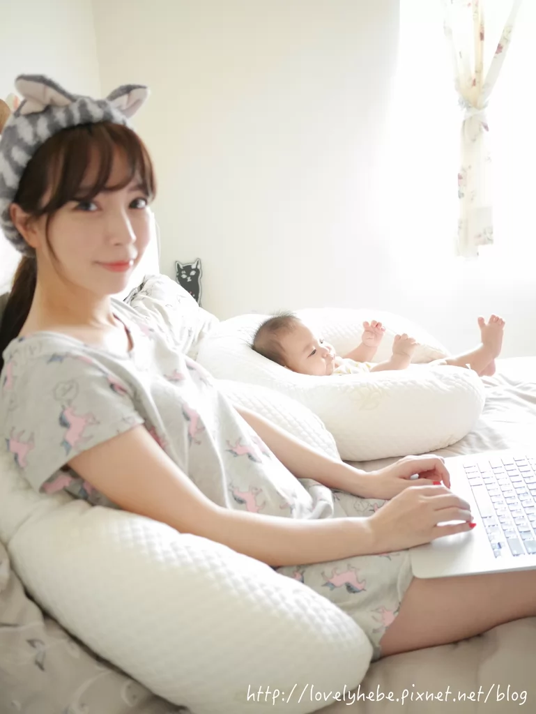 通常我用電腦用一陣子眼睛也好想閉一下  使用這款哺乳護嬰枕也可以讓baby壓在身上的重量減壓