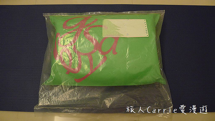 可見1顆枕頭,有外塑膠袋、枕袋、內塑膠袋,3層保護,