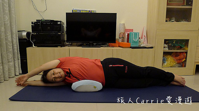 運用GreySa 格蕾莎美體伸展枕來伸展側腰也不錯。