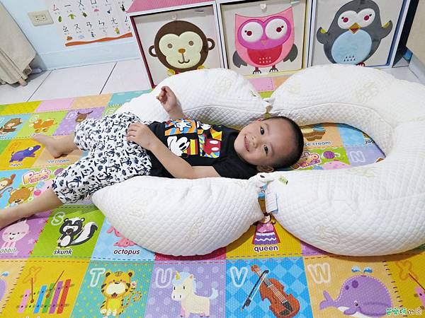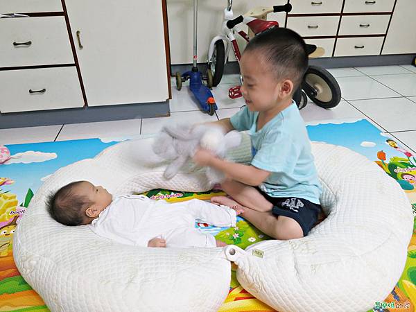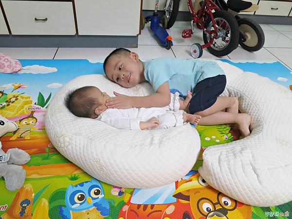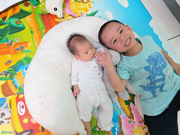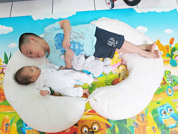 都是在床上陪小芭樂玩, 因為背部可以靠著「GreySa格蕾莎哺乳護嬰枕」,