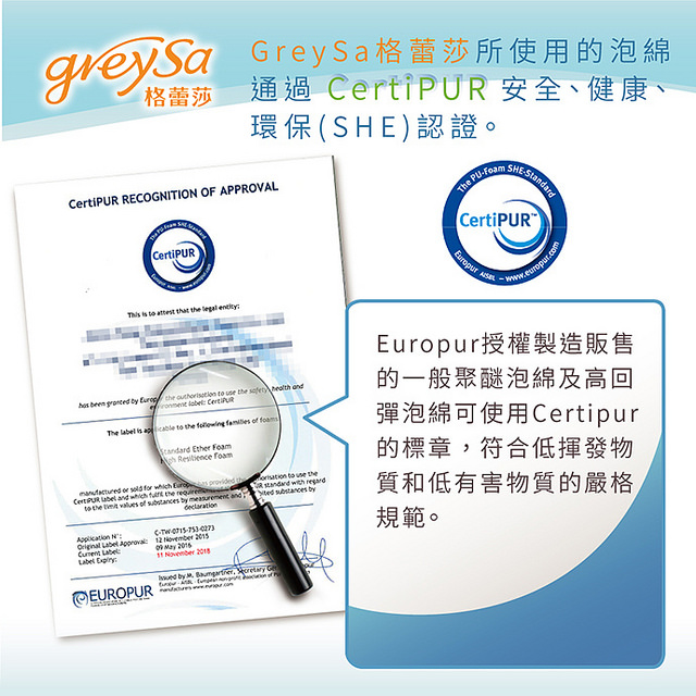 為了讓消費者能夠安心,格蕾莎使用的泡棉還通過許多檢驗認證呢: