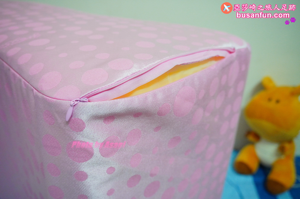 表布套上有隱形拉鍊,隱形拉鏈的顏色跟^^亞莎崎的粉紅色布套同色,看起來很美觀,也會很安全不會傷害到皮膚。