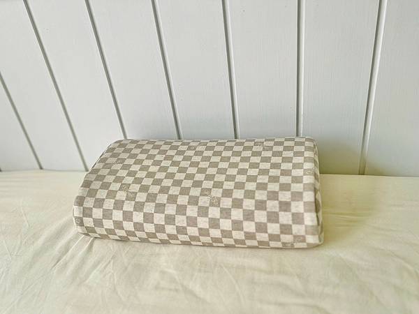 枕頭設計為兩端不同高度,一端為8公分,一端為9公分,可依照自身需求以及躺起來的舒適度來調整適合的方向;我自己則是喜歡將低處枕在靠近肩膀的地方,可以感覺枕頭與頭頸部更加貼合