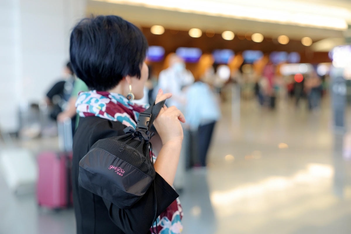 直接掛在行李箱拉桿上 候機、排隊、通關都不用特別多拿一件東西 手上空間留給護照、手機就好