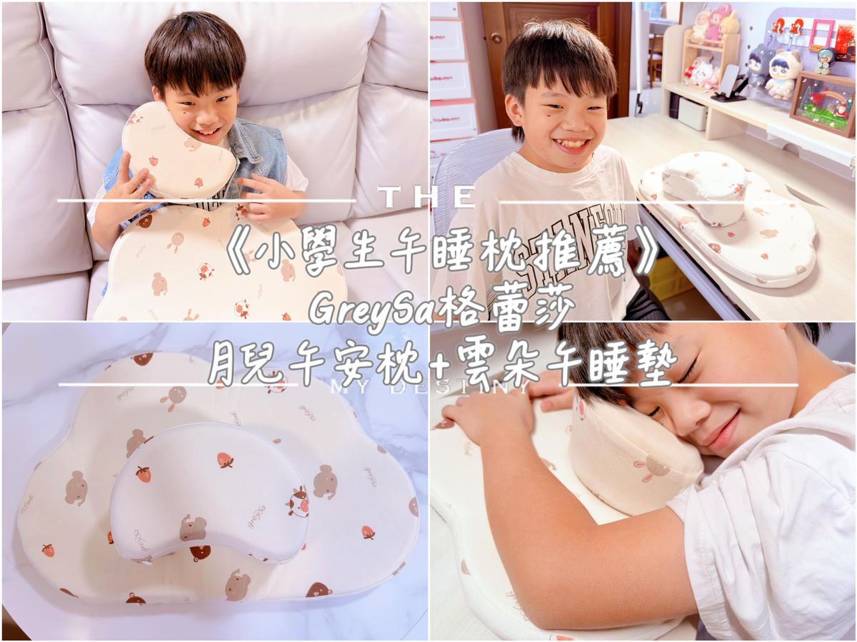 也因為這樣,我開始幫愷愷找一個舒服又不會增加負擔的小學生午睡枕,爬文接觸到GreySa格蕾莎的「月兒午安枕+雲朵午睡墊」,才發現原來午睡這件事情,其實可以準備得很舒服。