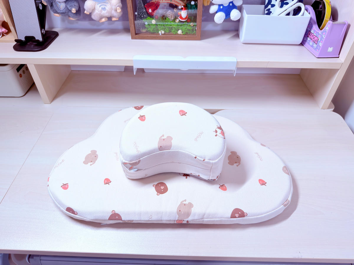 午休時把枕頭放好、手肘自然落在雲朵墊的位置,整個姿勢會比直接趴在桌面上舒服很多。