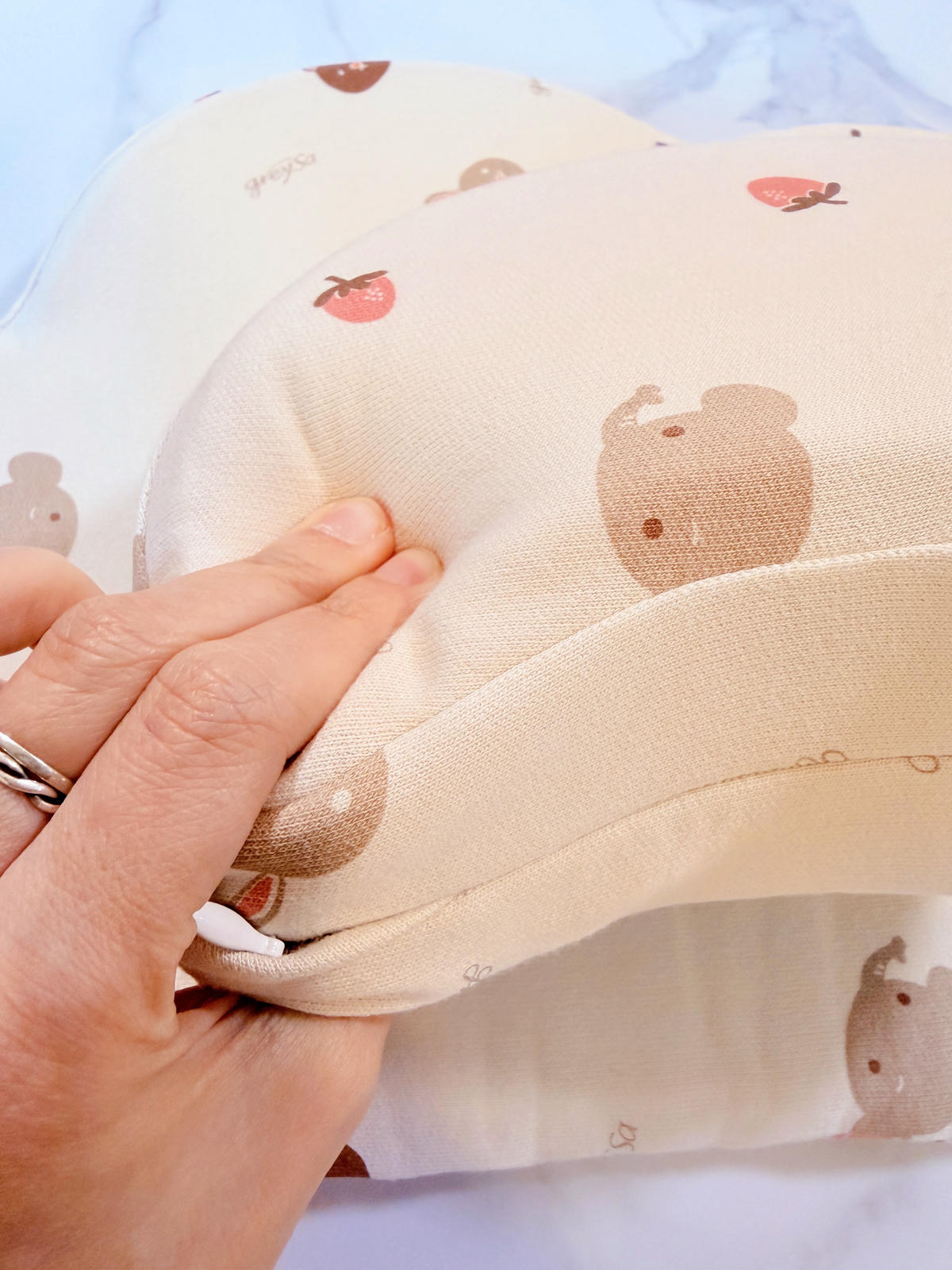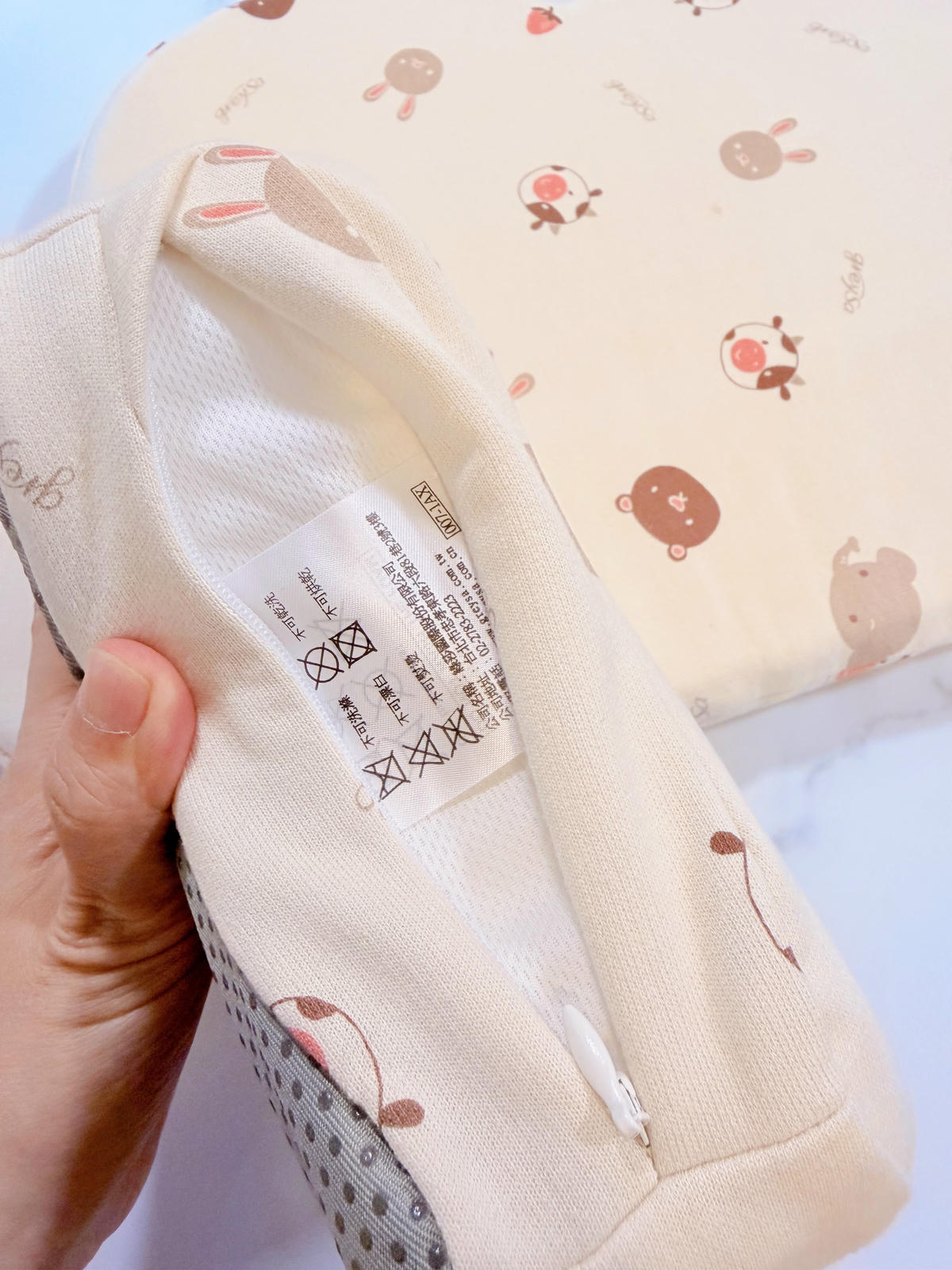 枕頭還有做隱形拉鍊設計,拉鍊可以藏在裡面,不容易外露,也比較不會刮到小朋友的肌膚,這個小細節我自己還滿喜歡的。