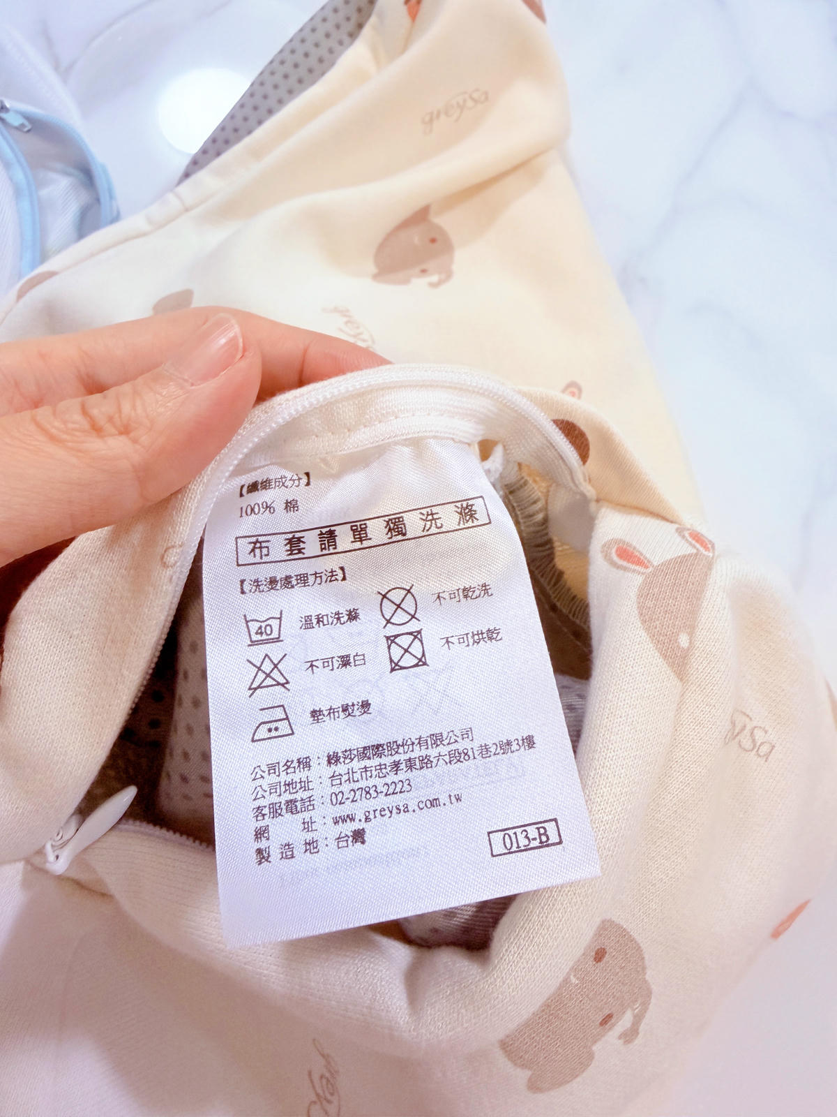 GreySa格蕾莎產品都是台灣製造 MIT,內外材料也通過SGS檢驗,表布是純棉印花布,背面是毛圈織布,透氣又吸濕。