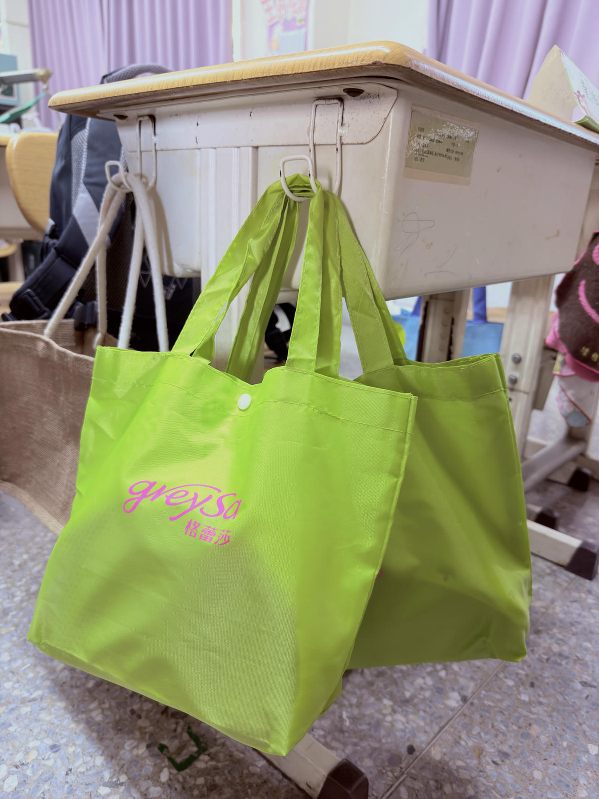 整組都有附收納袋,提袋上還有掛帶設計,可以直接掛在教室書桌旁邊的掛鉤上,對小學生來說很方便。