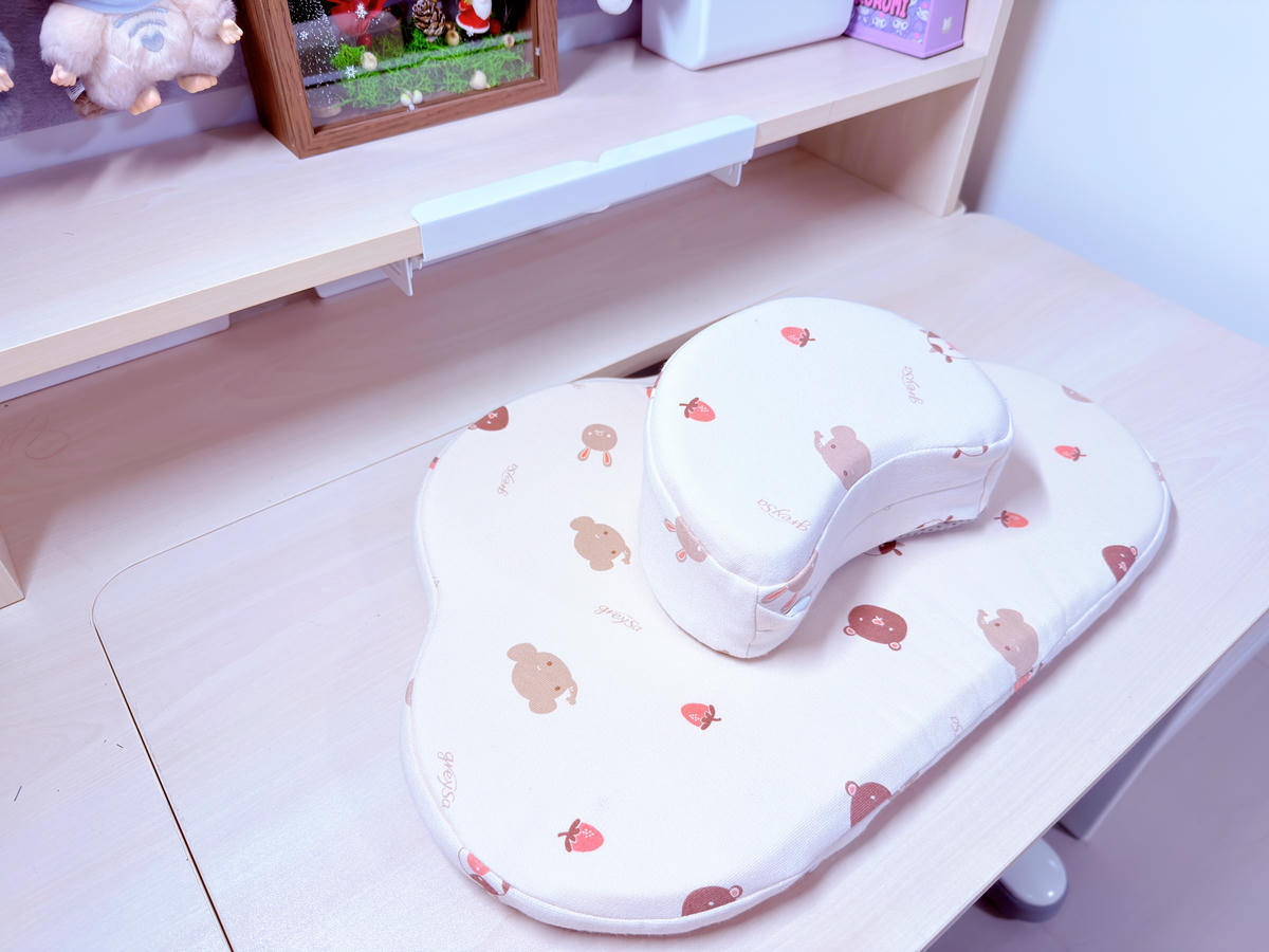 有點像是躺在柔軟的大腿上那種舒服的感覺,整個人會比較容易放鬆下來,而且記憶綿的回彈性很好,不會因為長時間壓著就塌陷,對孩子每天使用來說也更耐用。
